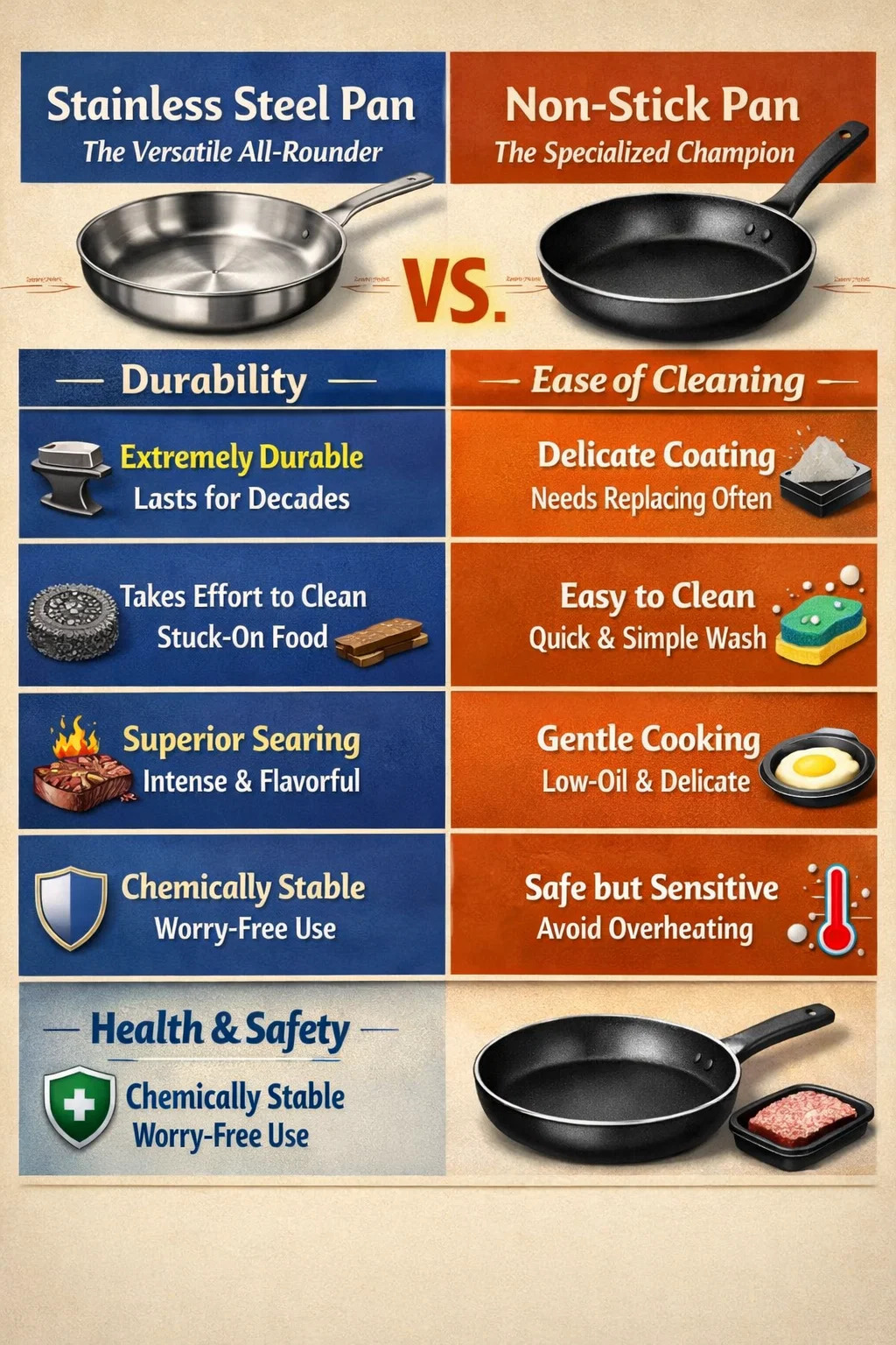 調理器具を選ぶとき、ステンレス製の鍋とテフロン加工の鍋にはそれぞれ独自の利点があります。どちらかが他方に取って代わるというわけではなく、むしろキッチンにおける「多才なオールラウンダー」と「特化したチャンピオン」のようなものです。