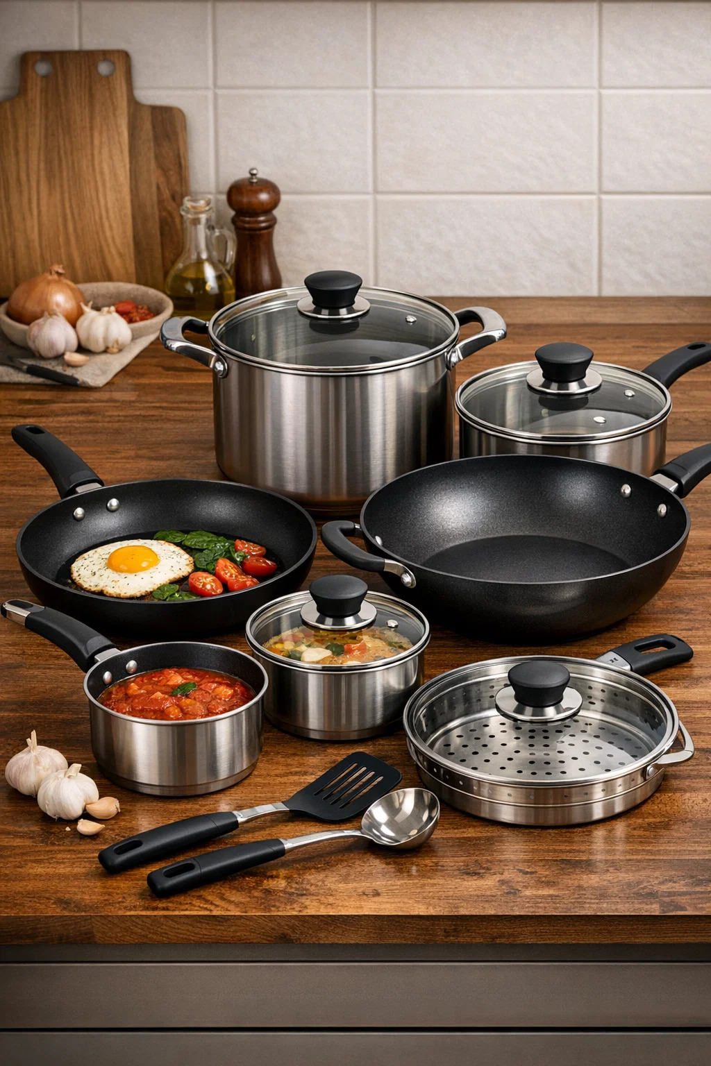 完全な キッチン調理器具のセット は、さまざまな食材や調理方法を扱うためのさまざまな「プロのツール」が含まれている、多機能のツールボックスのようなものです。このセットがあれば、目玉焼きの簡単な朝食から豪華な家族の夕食まで簡単に対応できます。