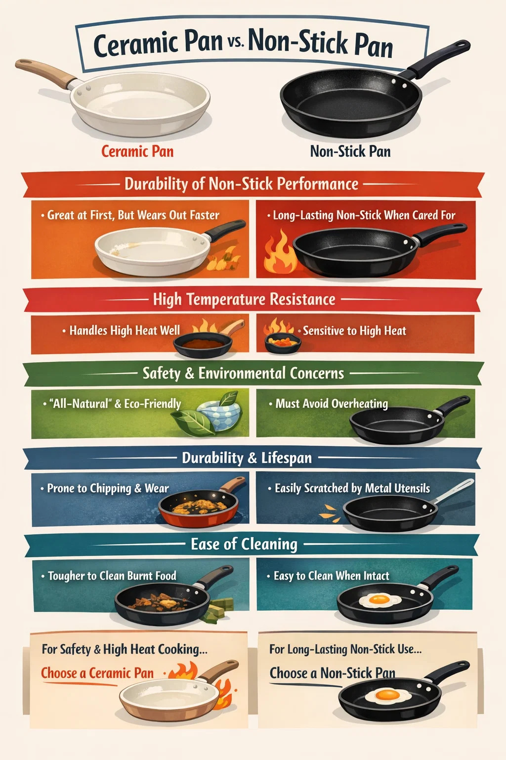 調理器具、セラミック調理器具、伝統的な調理器具を選ぶとき こびりつかない調理器具 とよく比較されます。どちらにも長所と短所があり、「より良い」選択肢は 1 つだけありません。それは何を優先するかによって異なります。